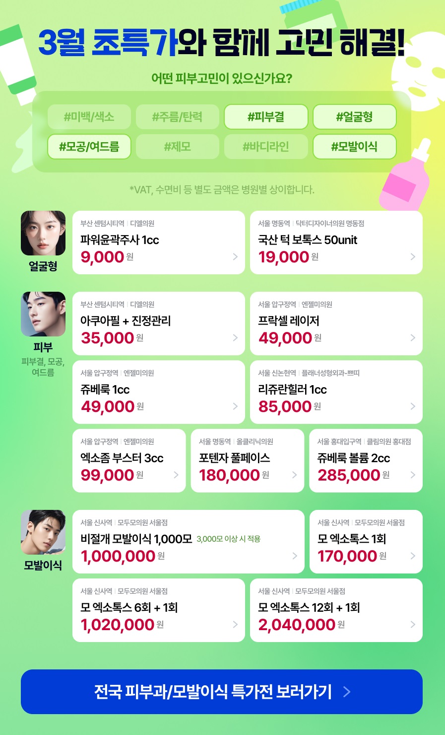 ํ ํผ๋ถ๊ณผ ๋ณ์์ ์ต์ ๊ฐ ํ ์ธ ํํ๋ฐ๊ณ ๋ชจ๊ณต ๊ณ ๋ฏผ ํด๊ฒฐํด ๋ณด์ธ์! |