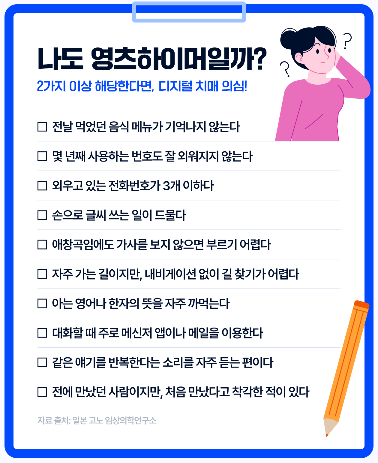 ๐ง "์... ๊ทธ... ๋ญ์๋๋ผ?" ๋์งํธ ์น๋งค, ์์ธ ํ์ด๋จธ ์ด์ ์ ์ฌ์ผ๋ก ๋ญ ๋จน์๋์ง ๊ธฐ์ต์ด ์ ๋๊ณ , ๊ฒ์์ฐฝ ์ผ๋๊ณ ๋ฌด์จ ๋ด์ฉ์ ์ฐพ์ผ๋ ค ํ๋์ง ๋ ์ค๋ฅด์ง ์๋ ๊ฒฝํ, ์ ์ ๋ง์์ง๊ณ ์์ง ์๋์๐? ์ต๊ทผ 20~30๋ ์ฌ์ด์์ ๊ธฐ์ต๋ ฅ ๊ฐํด์ ์ง์ค๋ ฅ ์ ํ ์ฆ์์ด ๋์ด๋๋ฉด์, โ์์ธ ํ์ด๋จธ(Young+Alzheimer)โ๋ผ๋ ์ ์กฐ์ด๊น์ง ๋ฑ์ฅํ์ด์!